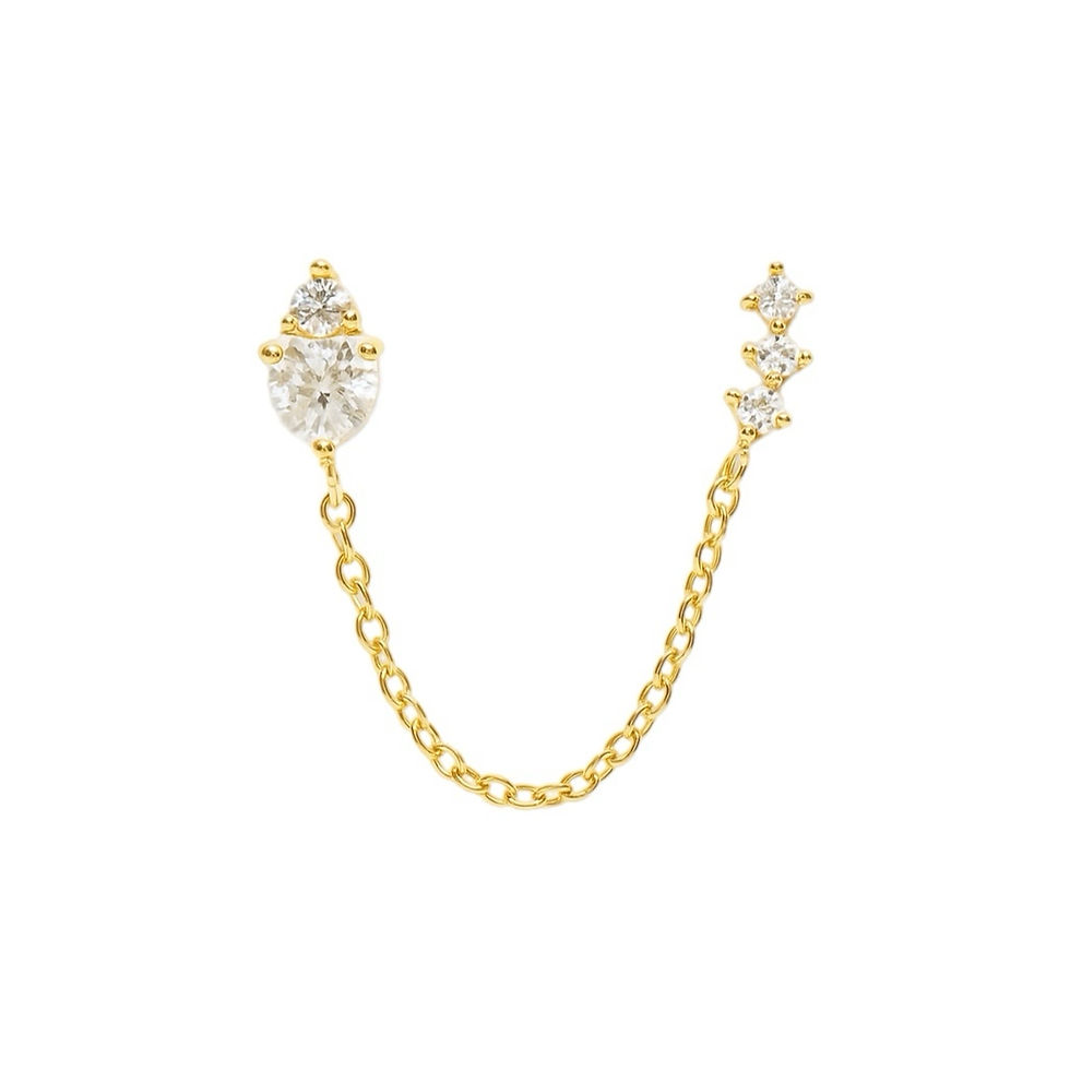 עגיל שלושה שרשראות נופלות עם נקודה זרקון - זהב