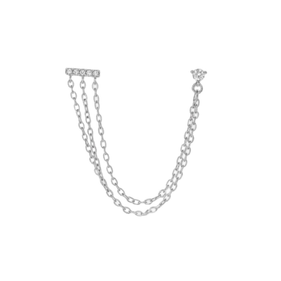עגיל שלושה שרשראות נופלות עם נקודה זרקון - כסף